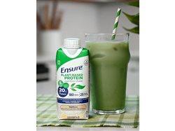 Overnight oats are back and better than ever. Mix rolled oats with an Ensure Plant-Based Protein shake, chia seeds and cinnamon. Let it sit overnight in the fridge for a revamped grab-and-go breakfast option. One Ensure Plant-Based Protein shake offers 20 grams of plant-based protein, 25 essential vitamins and minerals, and 5 grams of fiber.